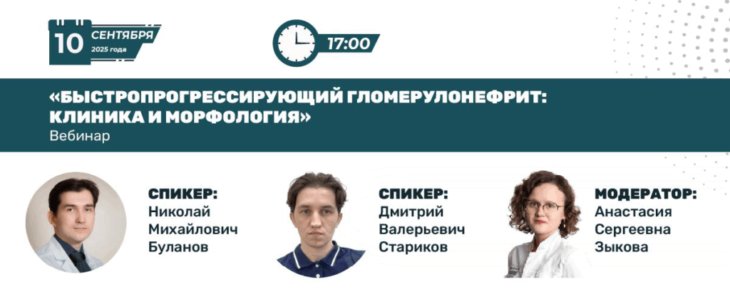 Российское диализное общество и Объединение молодых нефрологов России и Новых Независимых Государств приглашают Вас на первый осенний образовательный вебинар, который состоится в среду 10 сентября 2025 г в 17:00 (МСК).